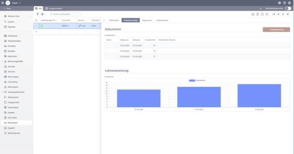 Verwaltung von Mitarbeiterinformationen an einem Ort und Hinterlegung von Gehaltsentwicklungen, Arbeitszeiten und Verträgen.