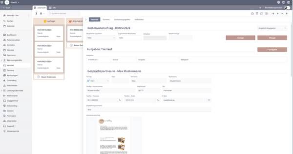 Organisiere und optimiere Deine Vertriebsaktivitäten. Behalte den Überblick über die Kundenakquise, erstelle vollautomatisch Angebote und schließe diese mit Hilfsfunktionen ab.
