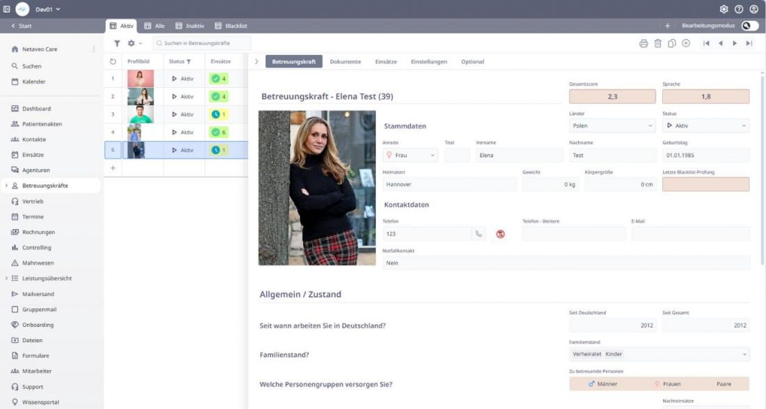 Das Arbeitsfeld von 24h-Agenturen ist sehr anspruchsvoll, aber mit den flexiblen Modulen von Netaveo Care kannst Du Deine Abläufe optimal organisieren. Nutze genau die Module, die Du brauchst und blende die nicht benötigten aus, um im Alltag den perfekten Überblick zu behalten. Die farbigen Kacheln stehen für praktische Zusatzmodule, die Dir noch mehr Flexibilität bieten.